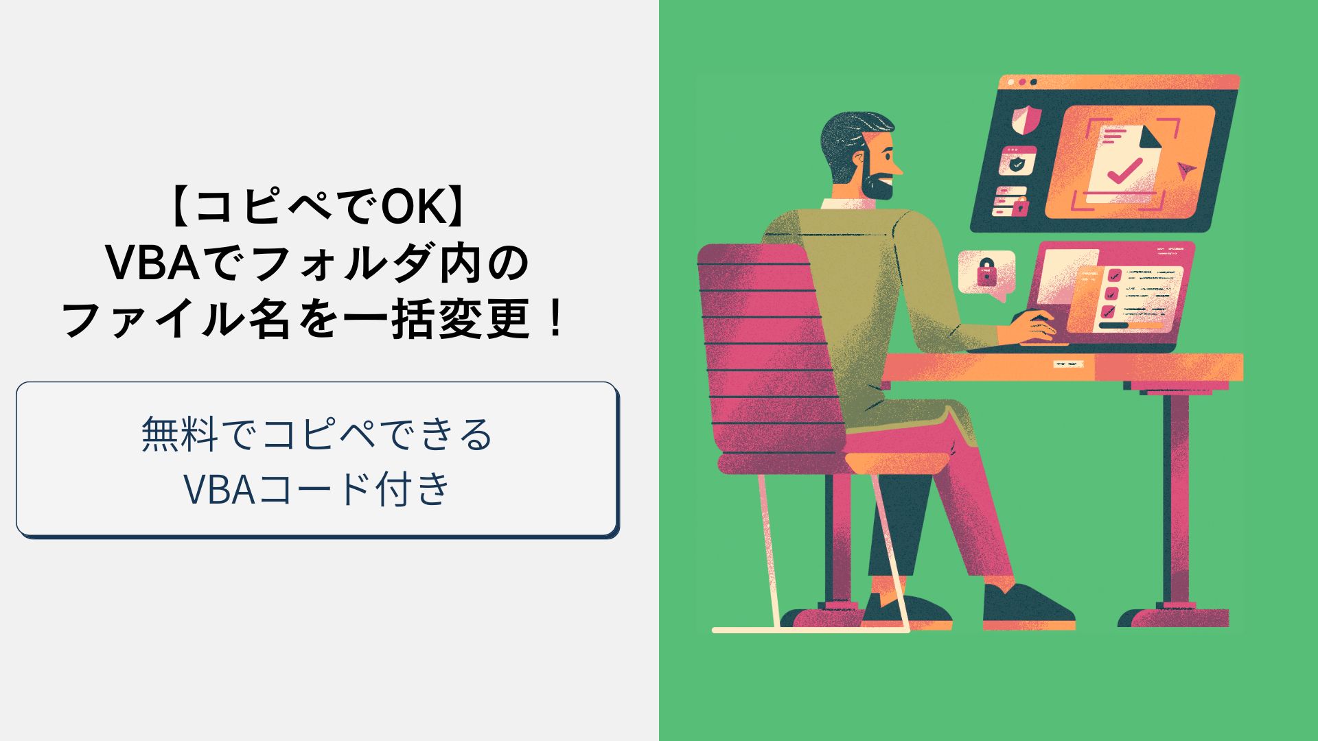 今回紹介するVBAは、フォルダ内のファイル名を一括で取得し、Excel上で変更を行うものです。リストを編集するだけで簡単にリネームできるので、手作業の手間を大幅に削減できます。それぞれの環境で使用できるようにコードも作成しているので、コピペするだけで使うことができます。