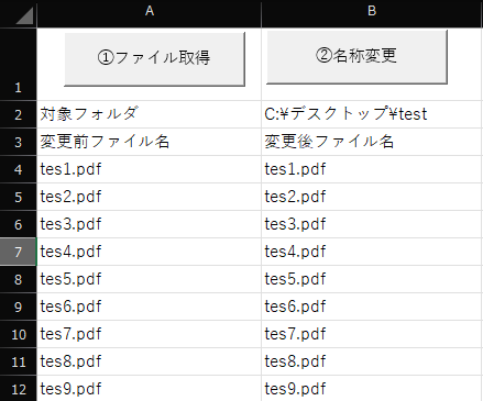 エクセルで入力したファイル名に変換できるので、一括で名称変更をするのに便利なマクロです