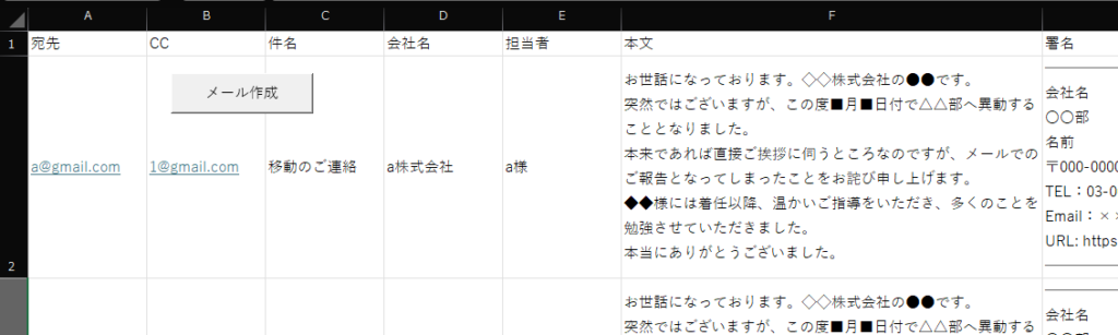 エクセルリストをもとに、メールを自動作成するマクロです。ほかのVBAと連携させて、見積書取得システムなどを作ることも可能です。