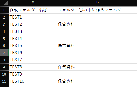 日付のフォルダを大量に作る場合や、リストと同じ名前のフォルダが必要な時に、便利なVBAです。