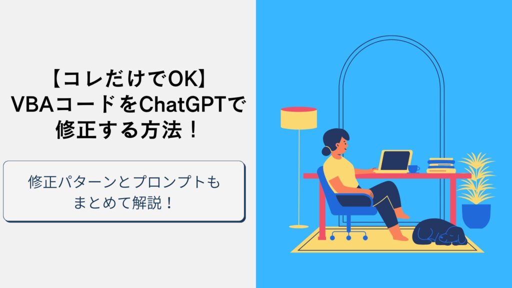 ChatGPTはゼロからコードを書くよりも修正に最適です。コピペコードとの組み合わせで、エラーを減削減、ノンコードのようにVBA作成ができます。