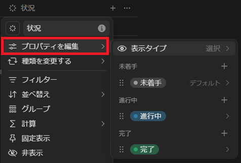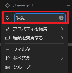 なお、項目の名称変更やステータスの項目を変更する際も、項目部分を選択して変更します。
