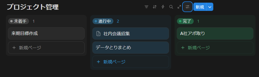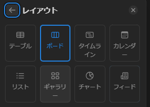 テーブルだとエクセルと変わらないレイアウトです。ただ、ボードやギャラリー等に変更することで、一気に見やすく管理がしやすくなります。