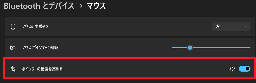 ②「ポインターの精度を高める」のON/OFFで使用感の微調整