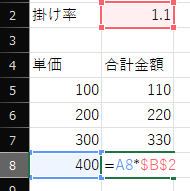 F4を2回/3回押せば縦横の固定ができる(複合参照)