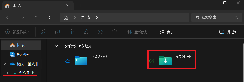 多くの場合、エクスプローラー(フォルダのアイコン)を開き、左側のクイックアクセスから「ダウンロード」を選択すると、該当のファイルが見つかるはずです。