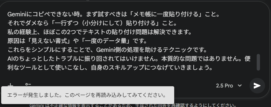 • Geminiにコピペできない時。まず試すべきは「メモ帳に一度貼り付ける」