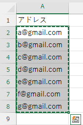 これをするだけで、自動的にアドレスに変換されます。間に「;(セミコロン)」を入れる加工作業は一切不要です。