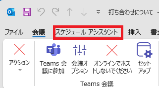 画面の上部にあるタブから「スケジュールアシスタント」をクリックします。