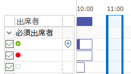 参加者全員の予定が横棒グラフで表示されるので、空いているところを探しましょう。