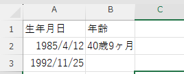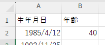 セル「A2」に開始日(生年月日や入社日)が入っている想定ですので、ご自身の表に合わせて「A2」の部分を変更して貼り付けてください。
